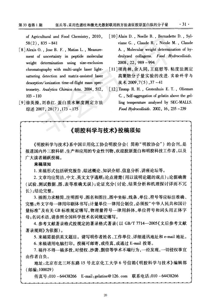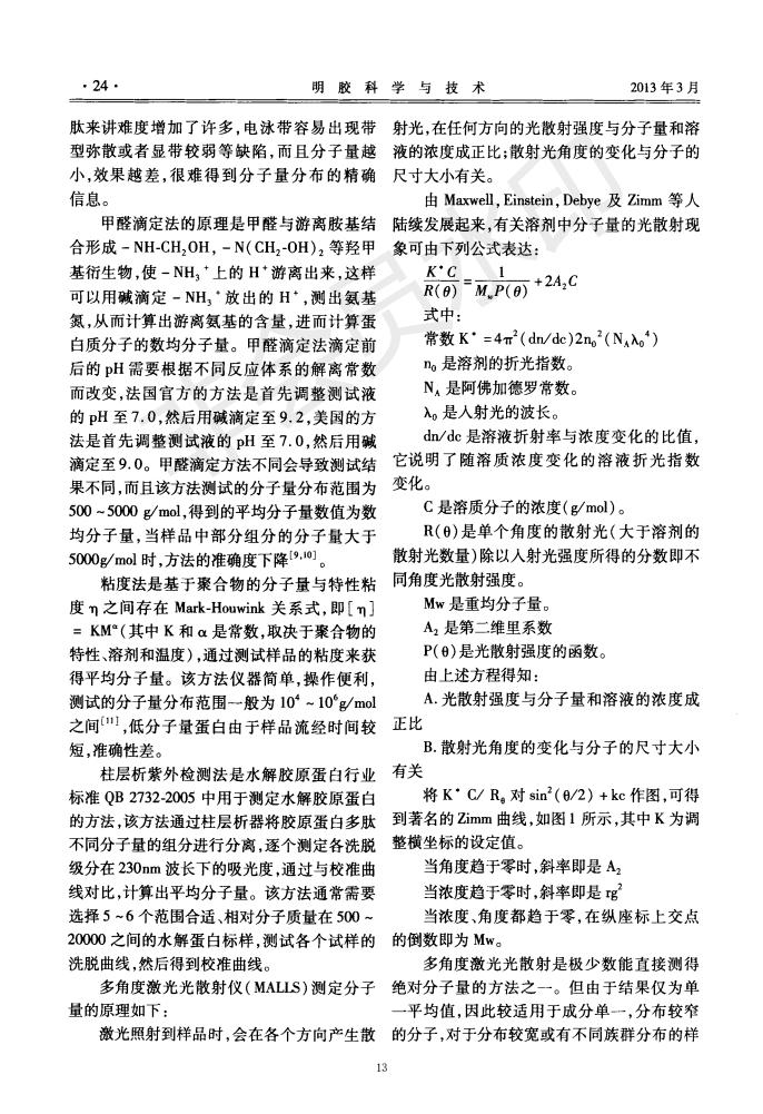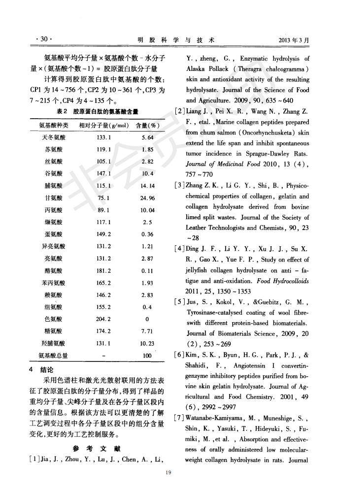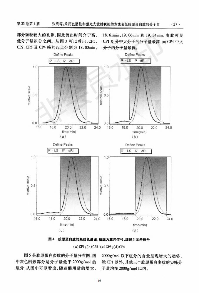 采用色譜柱和激光光散射聯(lián)用的方法表征膠原蛋白肽的分子量