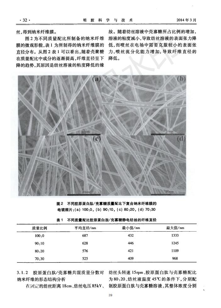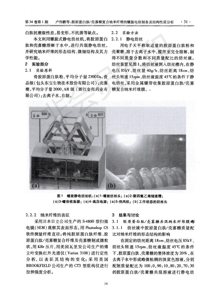 膠原蛋白肽/殼寡糖復(fù)合納米纖維的螺旋電紡制備及結(jié)構(gòu)性質(zhì)分析