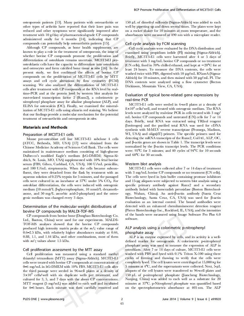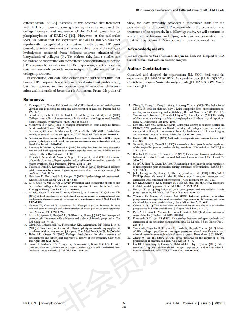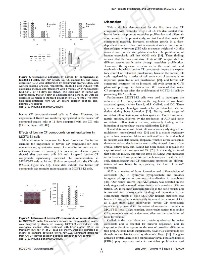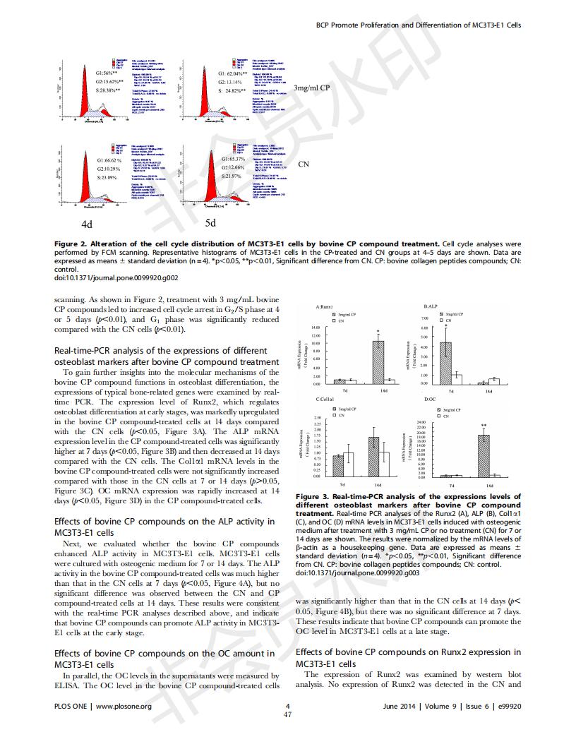 牛骨膠原蛋白肽促進MC3T3-E1成骨細胞增殖和分化