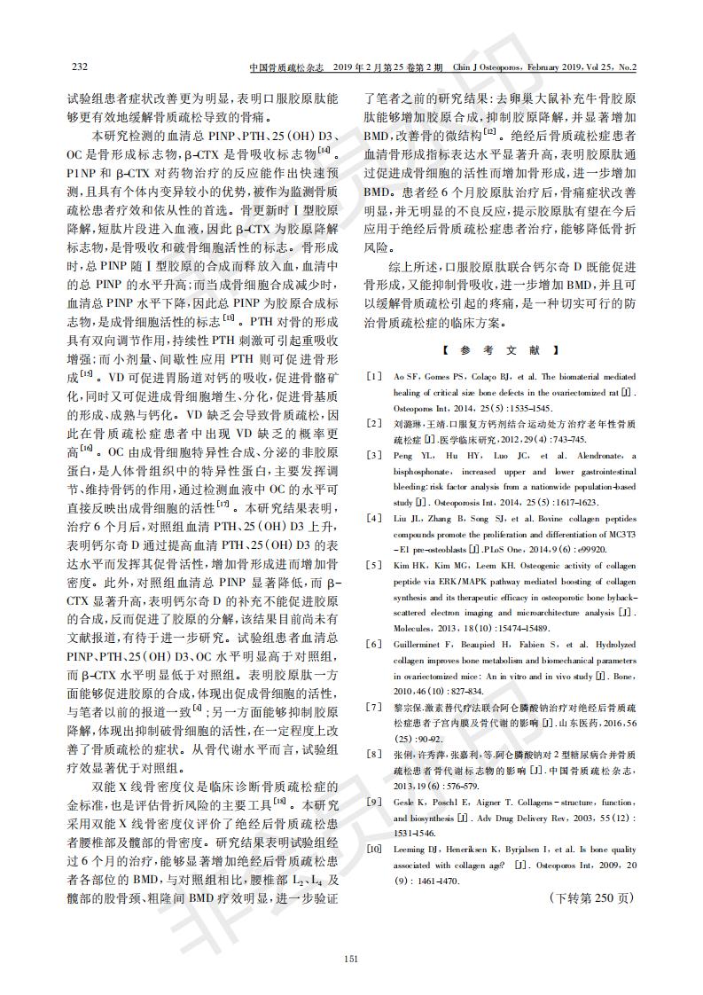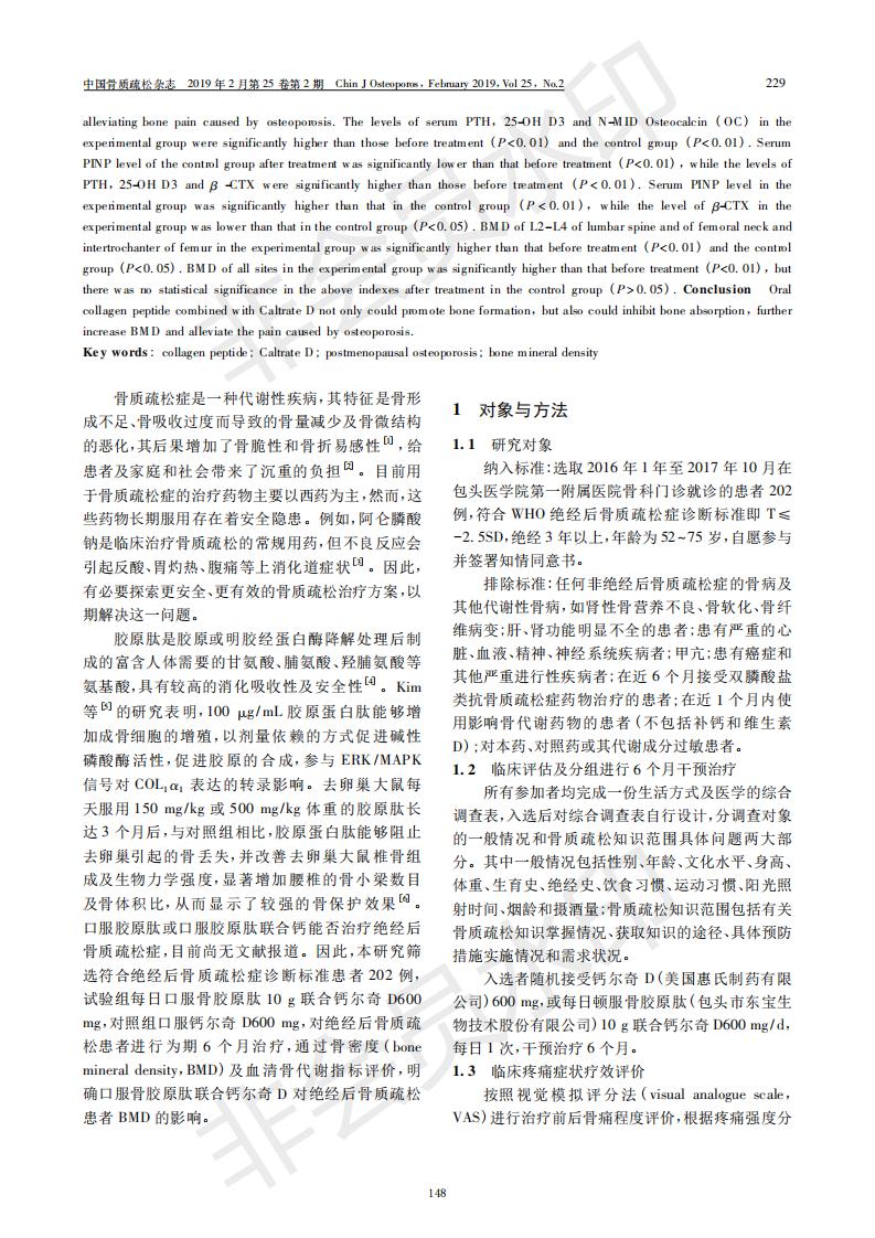 膠原肽聯(lián)合鈣爾奇D治療絕經(jīng)后骨質(zhì)疏松患者療效分析